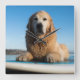Horloge Carrée Golden Retriever Dog Laying On A Paddle
