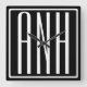 Horloge Carrée Gras moderne 3 initiales Monogramme | Blanc sur no