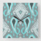 Horloge Carrée Gras Turquoise bleu gris Ikat Motif d'art tribal