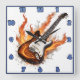 Horloge Carrée Guitare avec flammes et notes tourbillonnantes