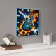 Des guitares électriques vibrantes éclatent en flammes, présentant des couleurs brillantes et des designs complexes dans un affichage dynamique de la musique et de la créativité.