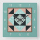 Horloge Carrée Hourglass Patch Quilt Block Turquoise & Peach