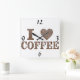 Show the world how you feel about your coffee with this awesome clock. "I LOVE COFFEE", c'est le café-out dans coffee beans. The numbers marking the quarters of each hour are written in black, to match the arms of the clock. However, the numbers and background are customizable.