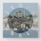 HORLOGE DU MUR : mosquée Dominante sur Sultan Ahmed à Istanbul surplombant la mer, avec des bateaux de transport passant par l'étroit canal. L'un des paysages les plus spectaculaires, lorsque l'on vient de la tour de Galata et que l'on observe l'architecture ancienne au-dessus de l'eau. Série Travel/Architecture - Istanbul, Turquie. Photographie originale/Art/Design par work4dream.