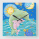 Horloge Carrée Jouer aux dauphins