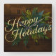 Horloge Carrée Joyeuses Fêtes Rustiques Bois Planches Peint Bleu