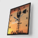 A shot of a Kansas colorful Sunset with clouds and a Windmill silhouette. That's bright and colorful north of Hutchinson Kansas USA out in the country. That's on a Square Wall Clock.