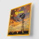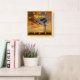 Une photo d'un Coucher de soleil doré avec des nuages et une Silhouette de moulin à vent au nord de Hutchinson Kansas USA dans le pays sur un HORLOGE CARRÉ.