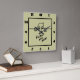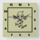 10.75" x 10.75" acrylic wall clock with the WWII graffiti "Kilroy Was here" on khaki.