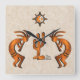 C'est une horloge murale Kokopelli Sud-Ouest unique "One of a Kind"! Il comprend deux Kokopelli sud-ouest en cuivre dansant autour d'un cactus et jouant la Flûte sous le soleil...sur un Arrière - plan Tan ! Design D'Art Original Par L'Artiste Kerry Miller.