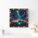 Cette illustration présente un arrière - plan de couleur néon à outils foncés avec un homme qui pêche dans un bateau dans un lac pendant une tempête de foudre. La scène est remplie d'une énergie puissante et dramatique des couleurs vives et brillantes.