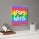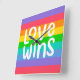 Cette oeuvre présente un arc-en-ciel coloré avec les mots Love Wins.