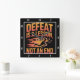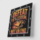 Cette horloge murale noire présente le texte de motivation "DEFEAT IS A LESON, NOT AN END" dans une police orange et rouge stylisée et audacieuse. Le graphique central montre un coureur, qui semble être un individu à la peau claire, en mouvement avec des stries dynamiques d'orange et de rouge derrière eux, suggérant la vitesse et surmonter les obstacles. Le design encourage une mentalité résiliente vers des revers.