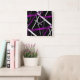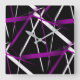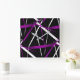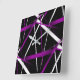 Horloge Carrée Lignes Abstraites violettes et blanches en noir