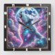 Horloge Carrée Loup mystique hurlant sous une Lune cosmique vibra
