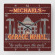 Cette horloge drôle et personnalisée est parfaite pour décorer votre grotte homme. Il dit, "[Votre Nom] Garage Mahal" et montre un aperçu du Taj Mahal avec des marteaux, des tournevis et une petite voiture qui semble être garée au milieu. Ajoutez facilement votre nom en haut. Les couleurs sont rouge, gris et orange vif.