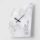 Horloge Carrée Marbre blanc Modern Script Nom personnalisé