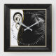 Horloge Carrée Marbre blanc, Noir, Filigree Or Graphique