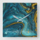Horloge Carrée Marbre doré bleu Abstrait Art