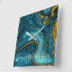 Horloge murale en marbre doré bleu Abstrait. Un tableau contemporain moderne. Beau art abstrait avec des couleurs de poussière bleue, verte, noire et or dans un élégant effet de marbre.