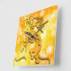 Ce design pourrait être pour le musicien dans votre vie. Il présente une Kokopelli à gauche jouant de la musique de flûte avec des notes de musique flottantes sur un arrière - plan de bokeh doré. Un endroit lumineux sur n'importe quel mur.