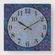 Horloge murale acrylique de 10,75 po x 10,75 po avec une image d'un beau design millefiori bleu, violet, rose et vert. Face d'horloge noire facile à lire sur cercle blanc transparent. Consultez la collection This & That Clock dans la section HOME.