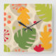 Horloge Carrée Mod Monstera Feuilles Abstrait Hawaï Tropical - Ch