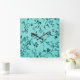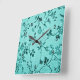 Horloge Carrée Modèle floral turquoise