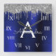 Silver and Navy Blue Faux Foil Metallic Sparkle Glitter Brushed Metal Monogram Name and Initial Luxury Wall Clock. This makes the perfect sweet 16 birthday, wedding, bridal shower, anniversary, baby shower or bachelorette party gift for someone that loves glam luxury and chic styles.