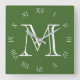 Monogramme Blanc Script chiffres romains sur Green Wall Horloge Design © Trinkets and Things 2017 - AHP Design. Tous droits réservés.