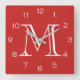 Horloge Carrée Monogramme en blanc sur wccn rouge