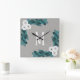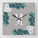 Horloge Carrée Monogramme moderne blanc Ranunculus Fleur & Foliag