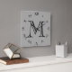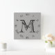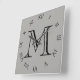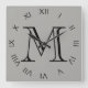 Horloge Carrée Monogramme noir chiffres romains sur gris wccn