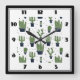 Horloge Carrée Motif du désert de Rustic Green Cactus