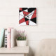 Horloge Carrée Motif géométrique moderne rouge noir et blanc