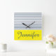 Motif rayé blanc, bleu et jaune moderne avec le nom fait sur commande