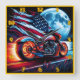 Horloge Carrée Moto en pleine lune, drapeau américain