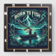 Il s'agit d'une illustration audacieuse et dynamique, avec un thème central de la pêche. Le design comprend une personne dans un petit bateau sur un lac la nuit, entourée d'un impressionnant affichage de boulons électriques. L'expression "NÉ AU POISSON" est écrite dans une bannière stylisée en haut. Toute la scène est encadrée par des poissons et des feuillages brillants et décoratifs, donnant à l'oeuvre une sensation puissante et énergique.