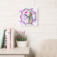 Horloge Carrée Nursery Rabbit et Bunting Clock en rose
