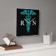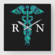 ・ Turquoise medical caduceus design in colorful turquoise and blue on wall clock with "RN" in white letters This clock has the grey time hands. If you'd prefer the black time hands, you may change or see the other clock in this store already designed with the black option.