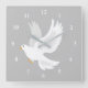 Horloge Carrée Oiseau de colombe blanche sur gris