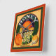 Add a little farmhouse charm to any wall with this vintage style americana advertising art. An old crate label from Honey brand California oranges has been painstakingly reproduced to fit the format of this square wall clock. The strong design element and the vivivid colors will be a standout addition to your room decor.