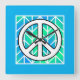 Horloge Carrée Paix en Pouf Bleu et Vert Jeu d'Oreiller