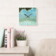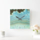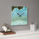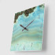 The design of this clock feh a beautiful close-up image of a piece of polished blue agate geode showing the intricate wavy vein and crystalline structures of the rock in various shades of blue and gray. It is simple design with clean lines that is versatile with many styles of home decor. This clock is fully customizable with your name or message in your choice of fonts and colors. This clock has a clock face which is absent from an earlier version.