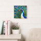 Horloge Carrée Peacock blanc bleu et vert Piebald