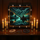 Un exemple frappant montre un pêcheur dans un bateau sur un lac sombre, illuminé par une tempête de foudre brillante. Les lignes abstraites et brillantes et le contraste saisissant entre la lumière et l'ombre créent une atmosphère humoristique et aventureuse. Les montagnes et le canard solitaire apportent un sentiment d'espace à la scène dramatique.
