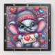 Cette horloge murale carrée enchantante présente une illustration numérique vibrante d'un bébé éléphant joyeux avec de grands yeux bleus scintillants. L'éléphant est vêtu d'un bonnet tricoté coloré et d'une écharpe rayée assortie, tenant un petit panneau qui indique "Je t'aime" avec un cœur rouge vif. Le fond est une tapisserie dense et psychédélique de motifs tourbillonnants, de cœurs multicolores et de poussière d'étoiles fantaisistes dans des nuances de violet, de bleu et de rose. L'œuvre d'art est encadrée dans un cadre moderne en bois noir avec des marqueurs numériques blancs gras pour une lisibilité facile. Cet accessoire fonctionnel pour la maison est un élément décoratif parfait pour les nurseries, les salles de jeux ou comme un cadeau sincère pour la Saint-Valentin. Sa composition détaillée et son thème