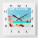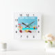 Trois piments rouges sur la plage. Chaud jour ensoleillé, mer bleue, sable blanc, parasols et sombreros. Deux piments sont noyés sous les parasols de plage, le troisième est profond de la taille dans l'eau. Chaque heure est une happy hour à la plage. Soleil, mer, sable, Sombrero. C'est drôle une des belles horloges murales carrés.