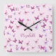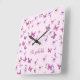 Horloge Carrée Pink Butterflies Pattern Custom Name