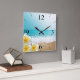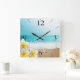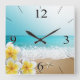 Trois magnifiques plumeria fleurissent au premier plan d'une scène de plage sereine avec des étoiles de mer sur le sable. Ce design fonctionne bien sur les formes carrés et rondes. Utilisez le bouton "Customiser" pour personnaliser avec votre propre texte. Design par Cheryl Daniels © 2013.